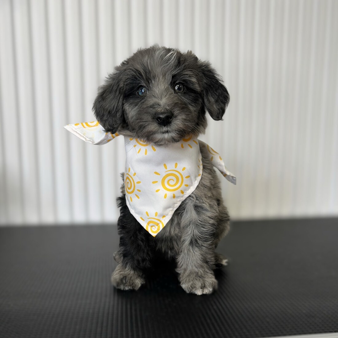 Meet Cosmo—the smallest of the bunch with a big, brave personality! This stunning blue merle boy has one marbled blue eye and one brown eye, plus a soft, wavy coat that makes him extra irresistible. He’s fun-loving, adores people, and is always ready to be part of the action. Cosmo did fantastic at his first groom and handled his vet visit like a champ. He’s ready to head home this weekend and steal someone’s heart!